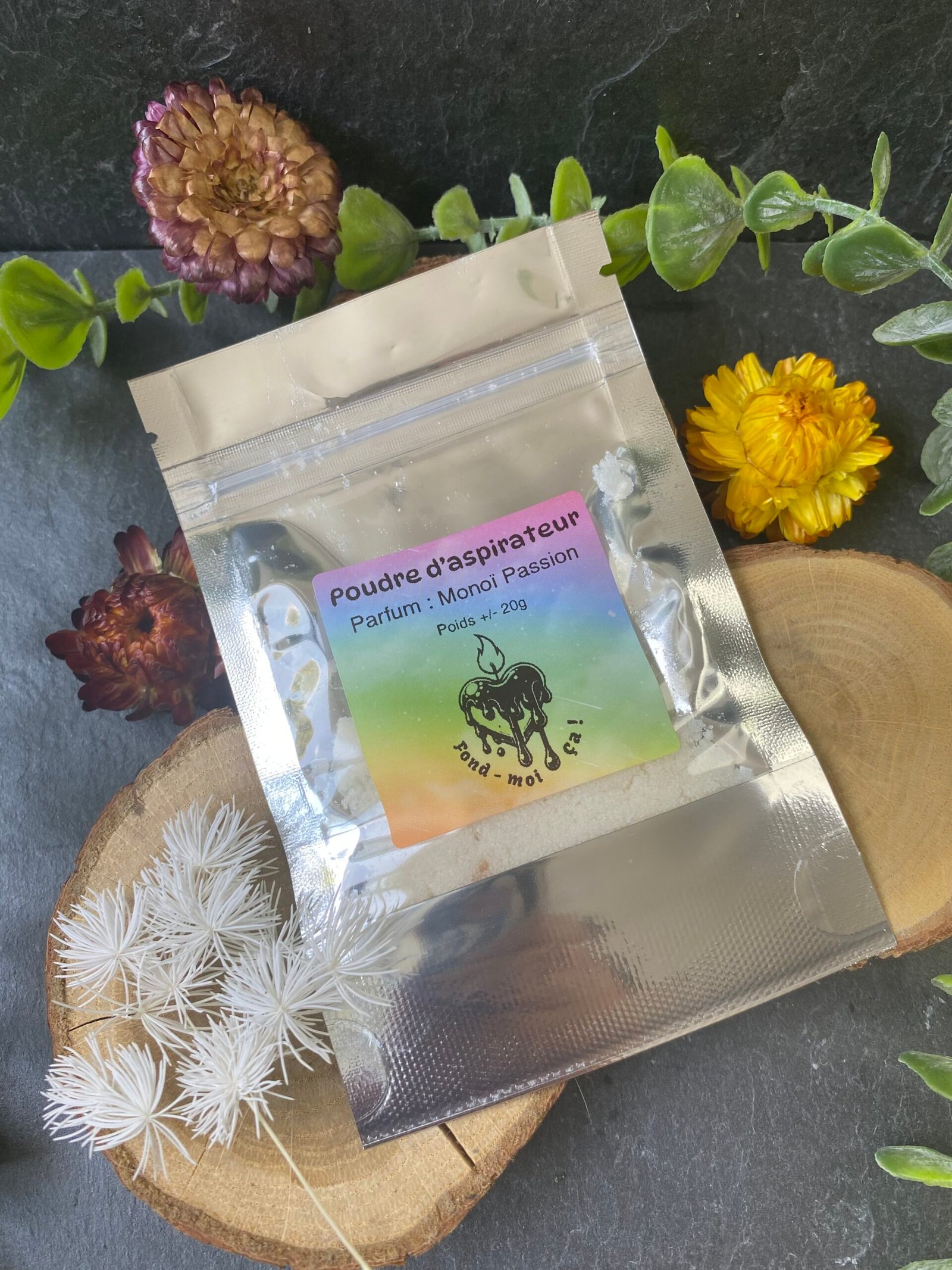 Poudre parfumée pour aspirateur MONOÏ PASSION odeur ultra puissante.